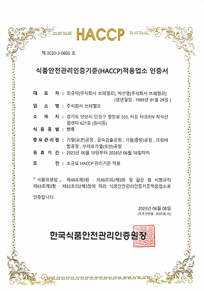 2021.08 해썹인증 획득 (과자류) / 해썹인증 획득 (빵류)